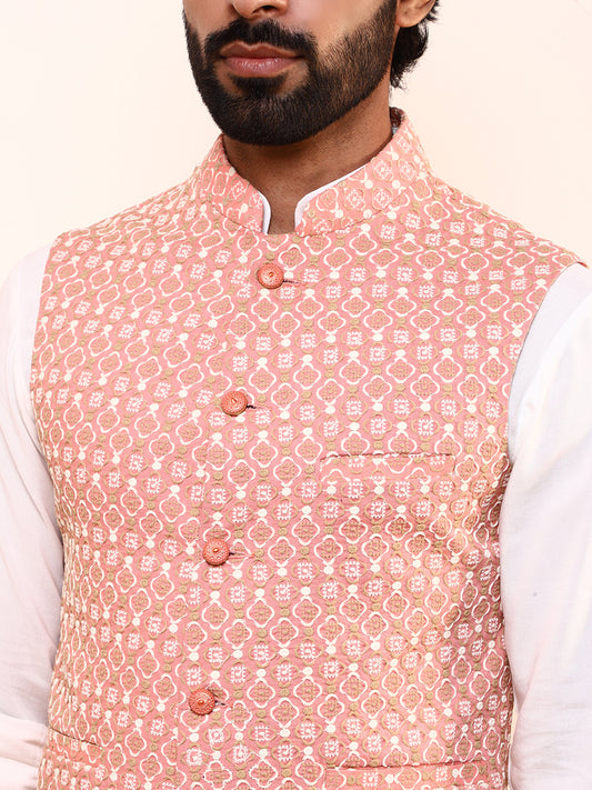 Black Chikankari Embroidered Men's Kurta Set with Long Jacket