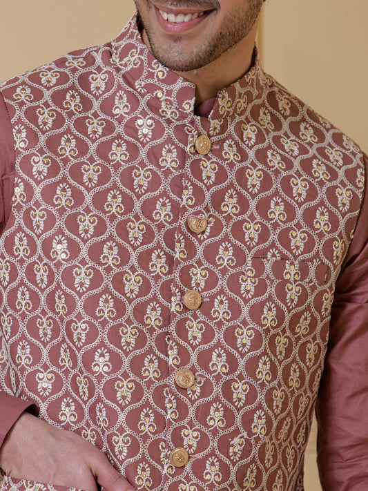 Azure Turquoise Floral Embroidered Men's Kurta Set with Long Jacket