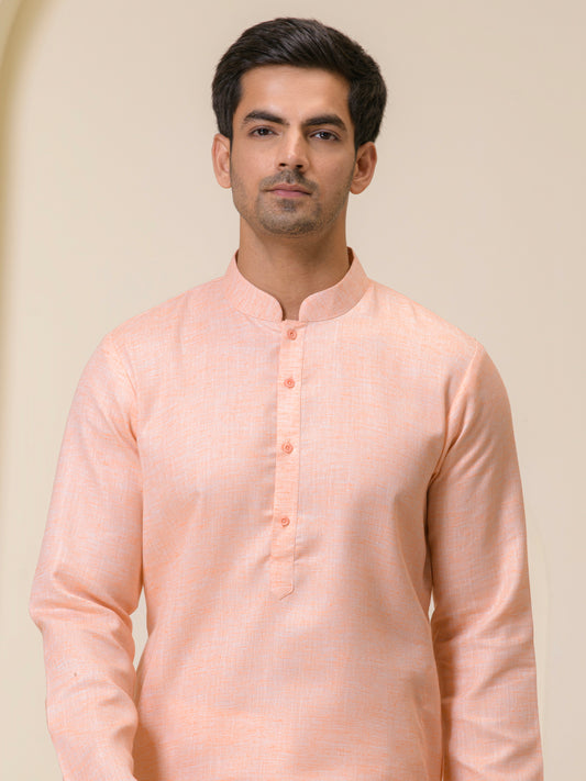 Pastel Pink Sequinned Men's Kurta Set with Long Jacket