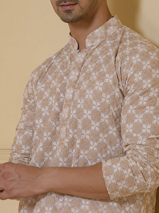 Traditional Motifs Beige Embroidered Men's Kurta Set