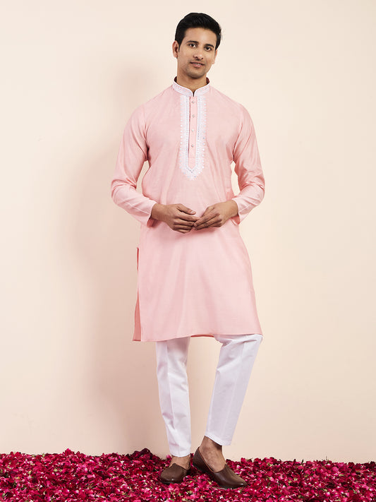 Light Pink Yoke Chikankari Men's Kurta
