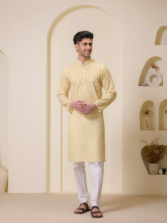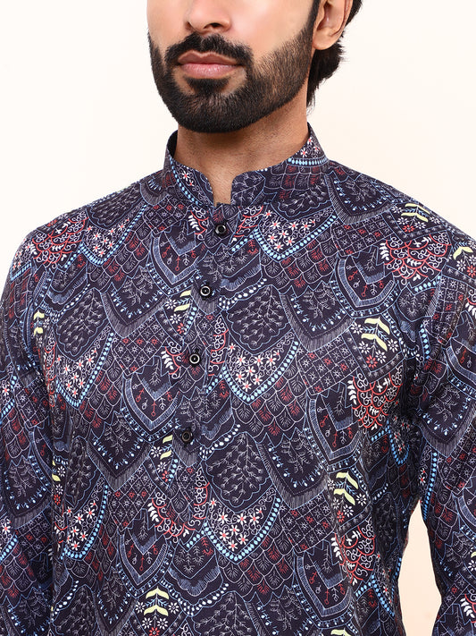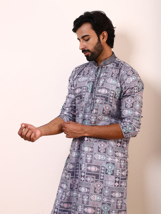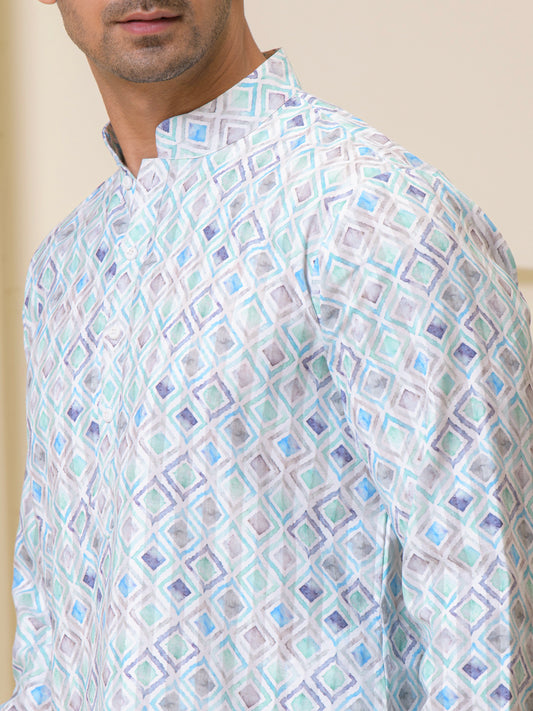 Jazzy Multi-colored Geometrics Printed Men's Kurta
