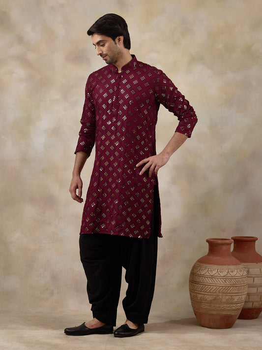 Regal Wine Embellished Men's Kurta